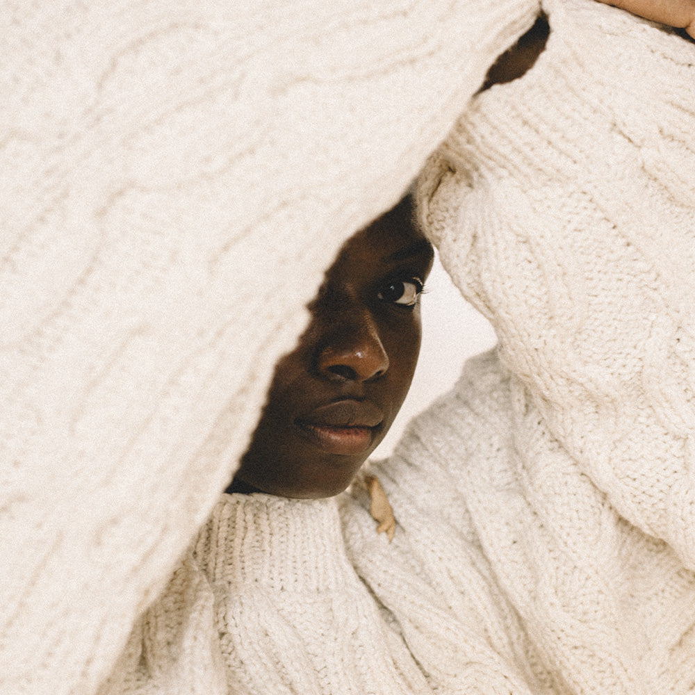 Made in Peru, the Chioma & Ingrid sweaters in lemon, moss, raisin, natural